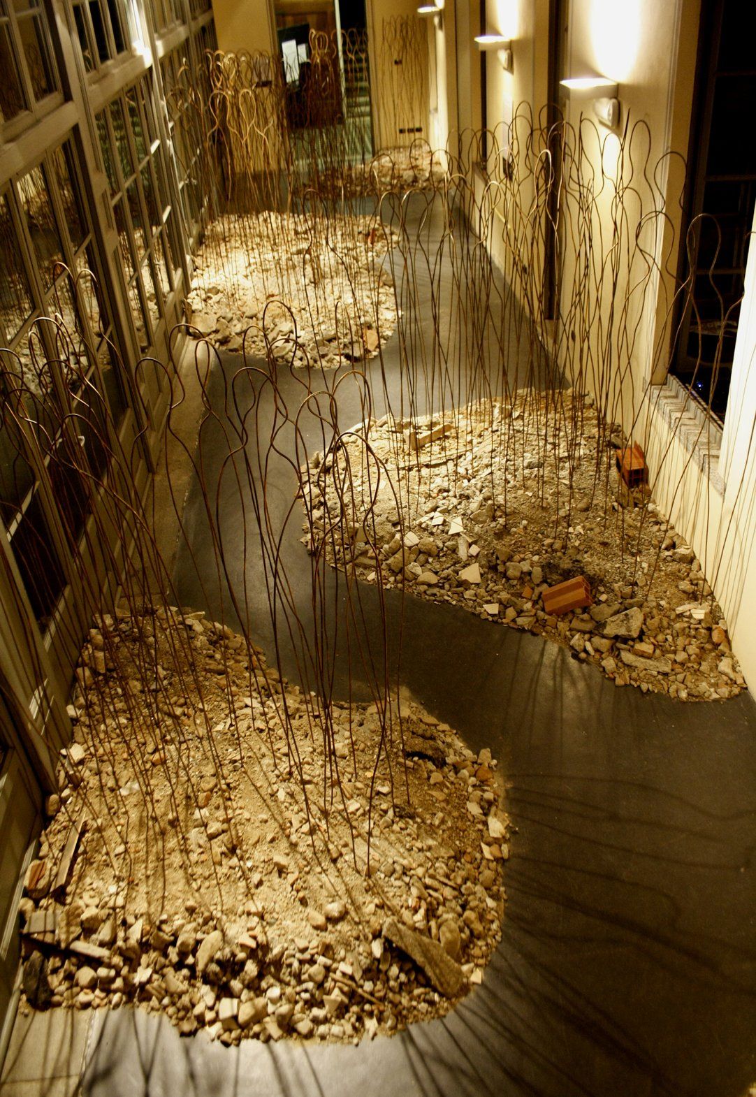 Villa Sartirana, Giussano (MB) • 2011 • 200 figure in ferro cotto, 4 metri cubi di macerie • 400x2000x230 cm