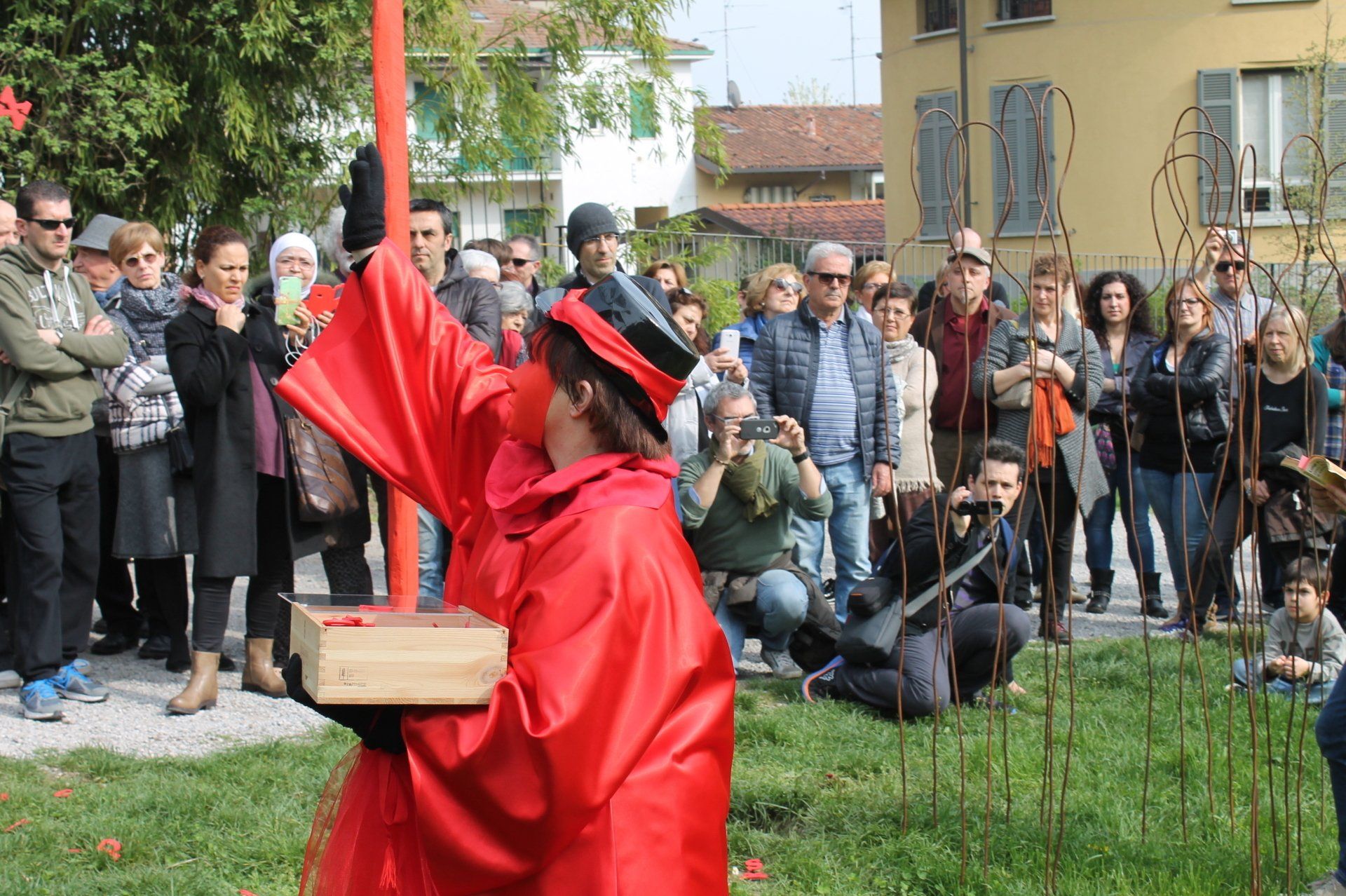 Festival della letteratura, Arcore (MB) • 2017 • legno, 60 figure in ferro cotto • 600x800x210 cm